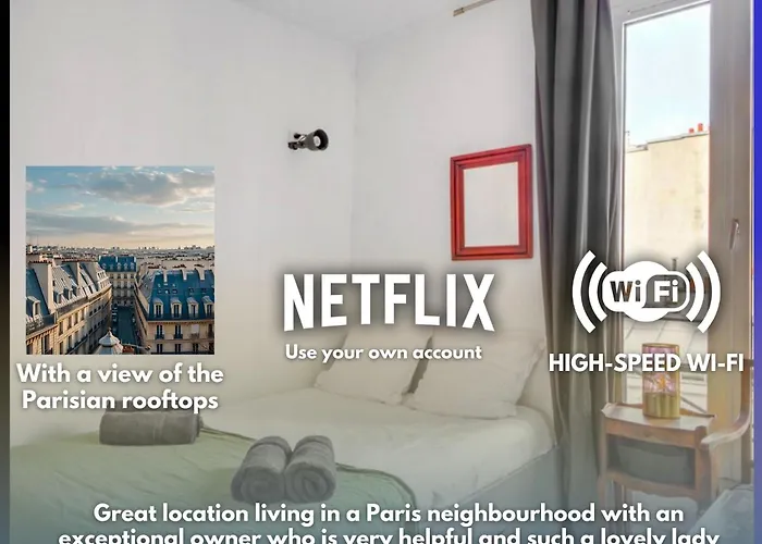 The 15 m^2 Charming Studio In North Paris Center is located about 25 minutes' walk from Musee d'Orsay Art Museum and offers Wi-Fi for either business or leisure. Along with baggage storage this 1-bedroom accommodation also has city vistas.